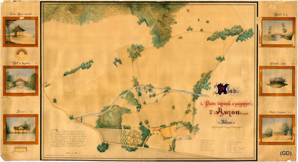 Le lieu est en cours d’inscription aux Monuments Historiques. Le parc a été dessiné par le comte de Choulot en 1849 et réalisé ensuite suivant le plan à quelques exceptions sur divers points ( situation exacte de l’étang et/ou construction des fabriques)