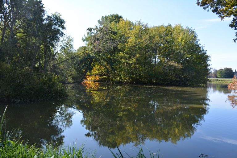 Cette partie de terre nouvellement nivelée serait plantée en prairie et redonnerait une nouvelle perspective à partir du château qui verrait ainsi l’étang à la fois côté « île » et à la fois côté « presqu’île ».