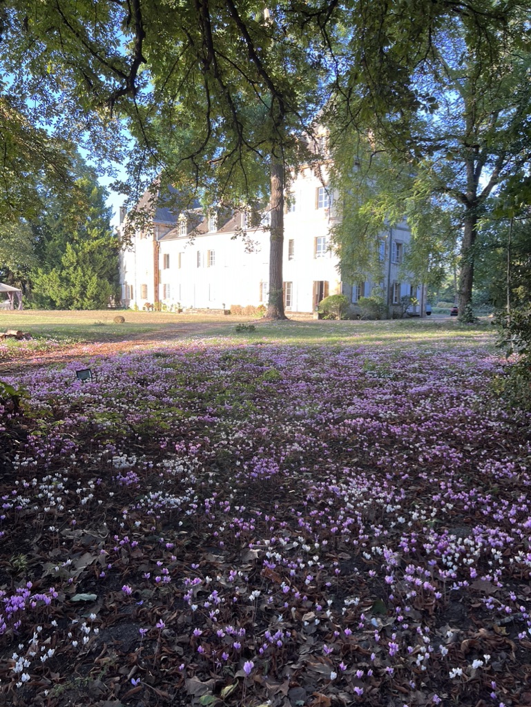 Le premier constat qui est fait est que le « jardin à la française » qui se trouve cotée face à l’arrière est disproportionné par rapport à la taille du château. Il préconise donc de récupérer le pré qui descend vers l’étang à fin d’agrandir légèrement la partie jardin à la française et de laisser une prairie descendre sur l’étang en bord dans ladite prairie de deux allées sur les bords desquels on aura a pris soin de planter des buis ou des ifs.