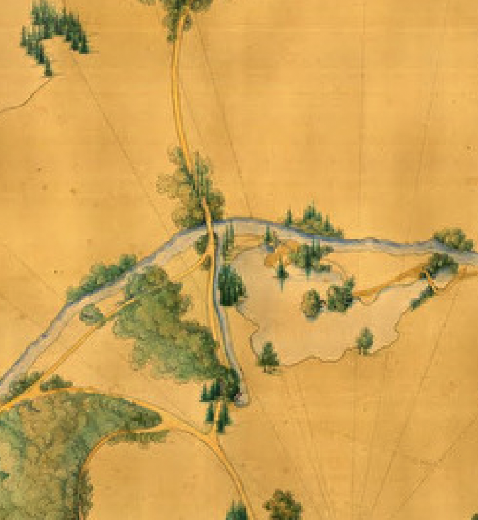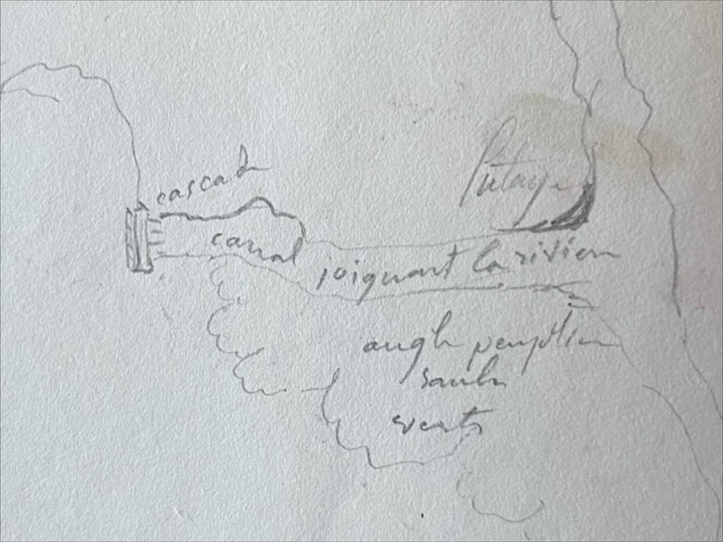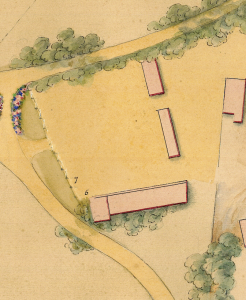 Dessin des allées d'arrivée et de la perspective en face du chateau de l'autre coté du chemin - qui deviendra une route plus tard