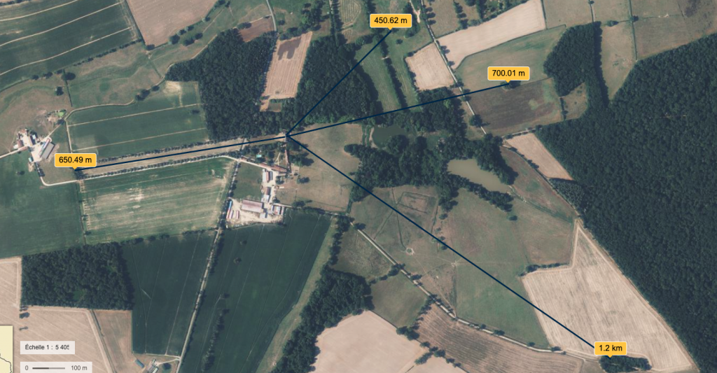 Les différents bosquets ou points de fuite existants et leur distance depuis le salon